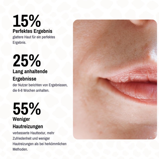 Vorteil: Reduziert Hautirritationen und sorgt für geschmeidige, glatte Haut.Perfekt für eine professionelle Haarentfernung zu Hause!